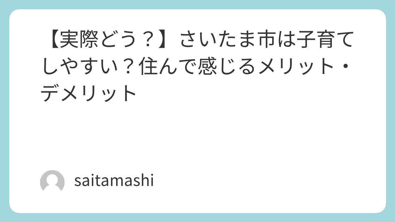 この記事では、そうした情報も含めて、実際に住む目線でさいたま市の子育て環境を整理していきます。