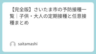 子育て 【完全版】さいたま市の予防接種一覧|子供・大人の定期接種と任意接種まとめ さいたま市の予防接種一覧を解説。子供の定期接種から大人のワクチンまで、無料・有料の違いや受け方をわかりやすく紹介します。 2026.03.26 子育て福祉関係