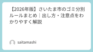 ゴミ分別 【2026年版】さいたま市のゴミ分別ルールまとめ|出し方・注意点をわかりやすく解説 さいたま市のゴミ分別ルールをわかりやすく解説。燃えるゴミ・資源ごみ・粗大ごみの出し方や注意点をまとめています。初めての方でも安心して理解できる内容です。 2026.03.18 ゴミ分別生活情報粗大ごみ